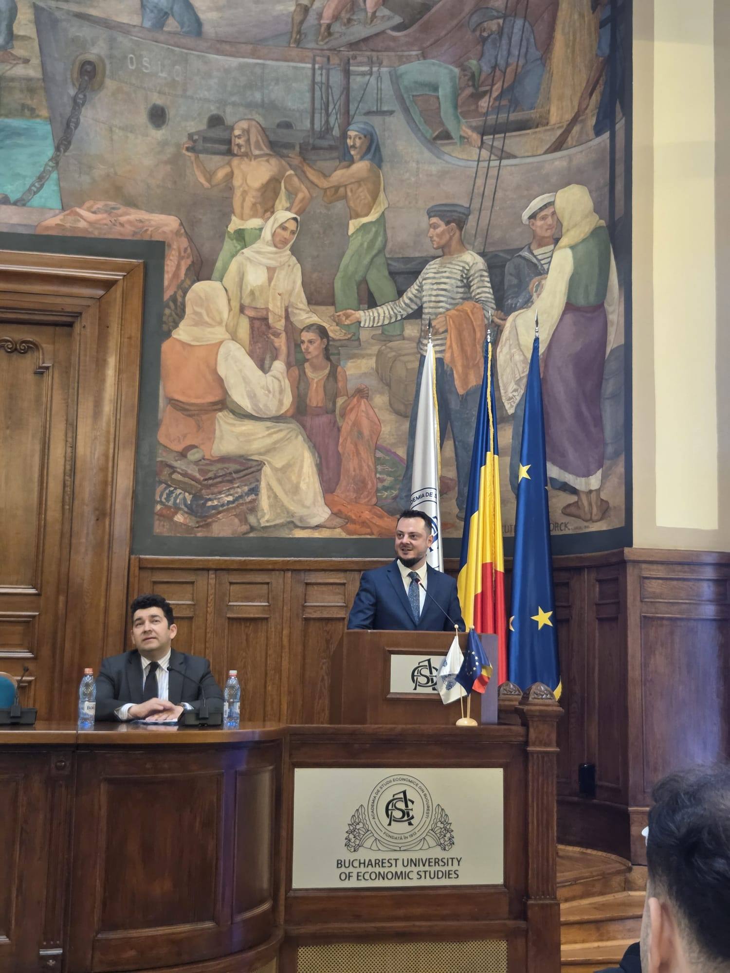 The event was opened by the Dean of the Faculty of International Business and Economics, Assoc. Prof. Ioan Radu Petrariu, PhD, who emphasized the importance of international academic dialogue and connecting students to current debates in the global economy.